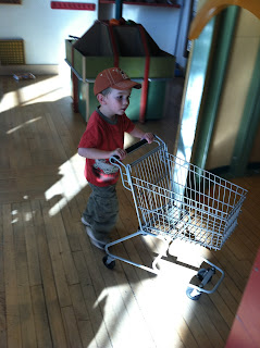 Starting em out young! His Daddy won't grocery shop for me so maybe I can get Blake trained to do it!!!